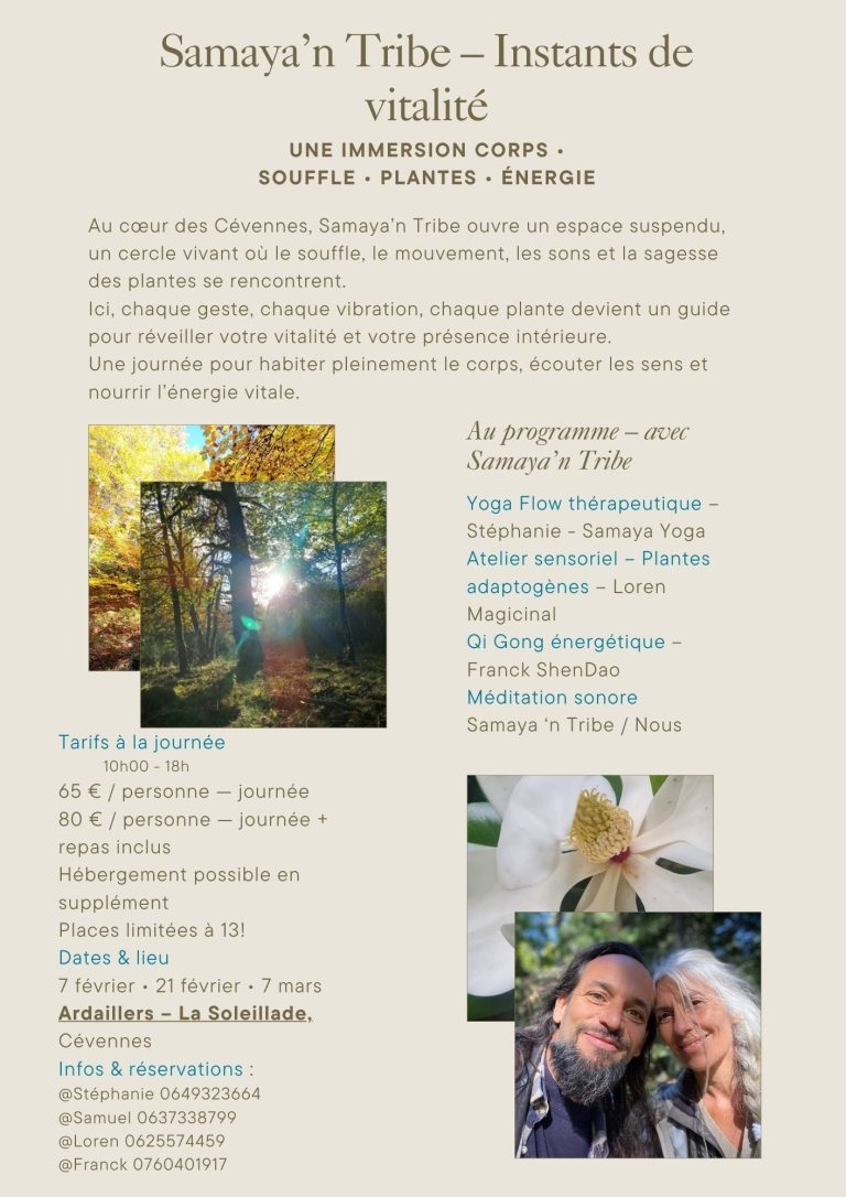 Nos enseignements s’ancrent dans le corps et le souffle, à travers le yoga, le mouvement, la méditation, la musique Live et l’exploration du vivant.